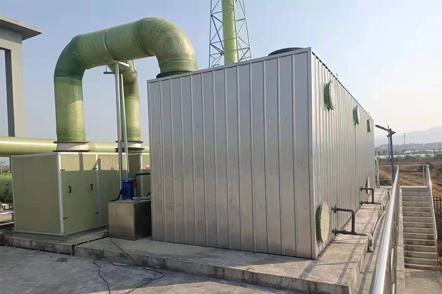 生物過(guò)濾工藝采用液體吸收和生物處理的組合作用,將人工篩選的特種微生物菌群固定于填料上,當(dāng)臭氣經(jīng) 過(guò)填料表面,可從臭氣中獲得營(yíng)養(yǎng)源的那些微生物菌群,在適宜的溫度、濕度、pH 值等條件下,將會(huì)得到快 速生長(zhǎng)、繁殖,并在填料表面形成生物膜,當(dāng)臭氣通過(guò)其間,有機(jī)物被生物膜表面的水層吸收后被微生物吸 附和降解,得到凈化再生的水被重復(fù)使用。污染物去除的實(shí)質(zhì)是以臭氣作為營(yíng)養(yǎng)物質(zhì)被微生物吸收、代謝及 利用。經(jīng)處理的臭氣通過(guò)排口達(dá)標(biāo)排放。